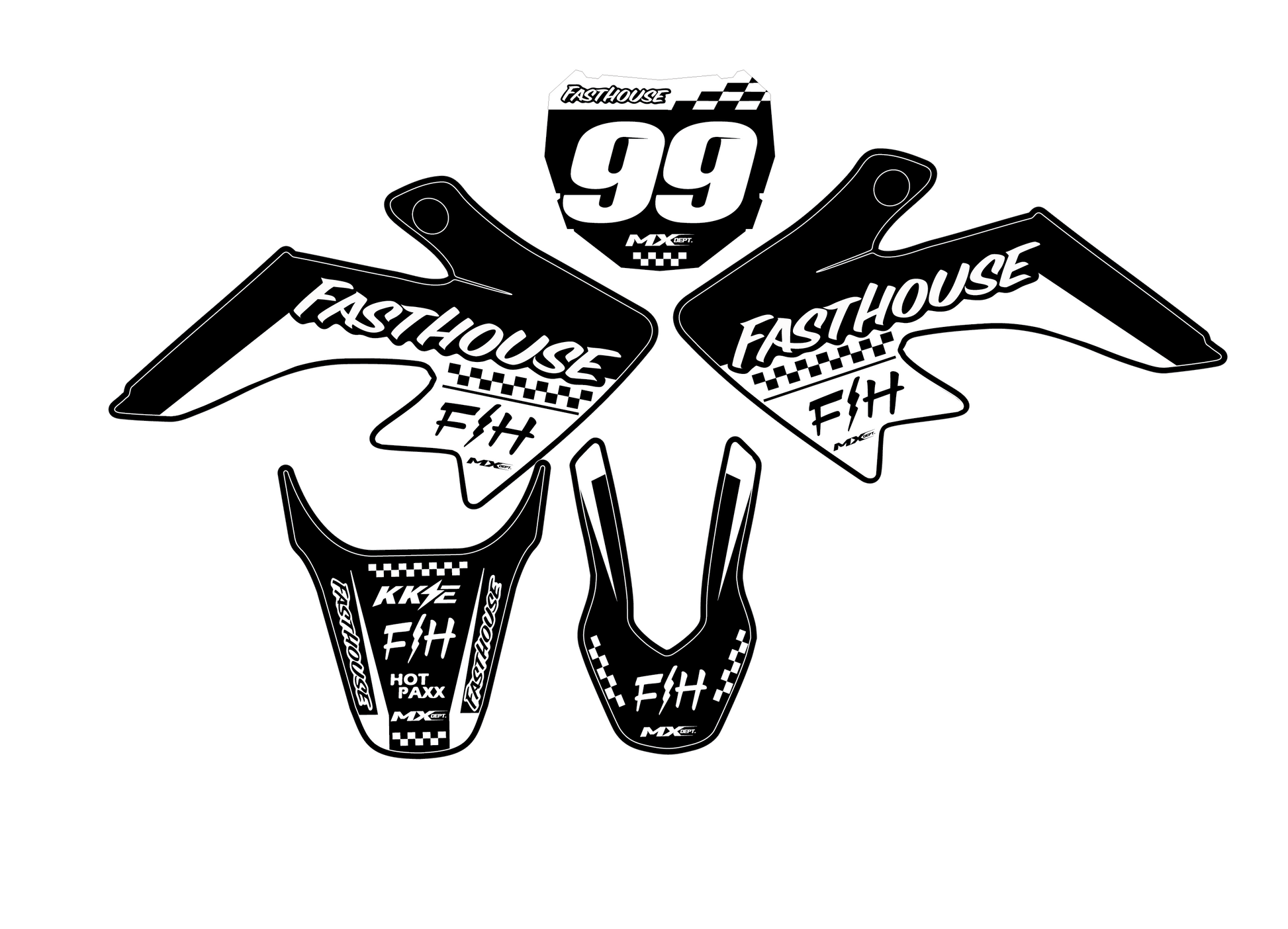 Want a sleek, race-style bike? This Fasthouse kit is for you! Choose any colors, vinyl, and laminate to customize this kit to your liking!